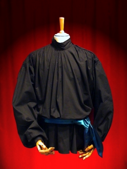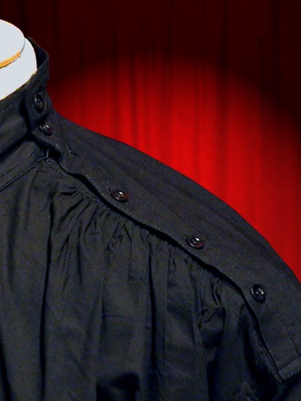 Zugeknöpft entlang der Schulter.